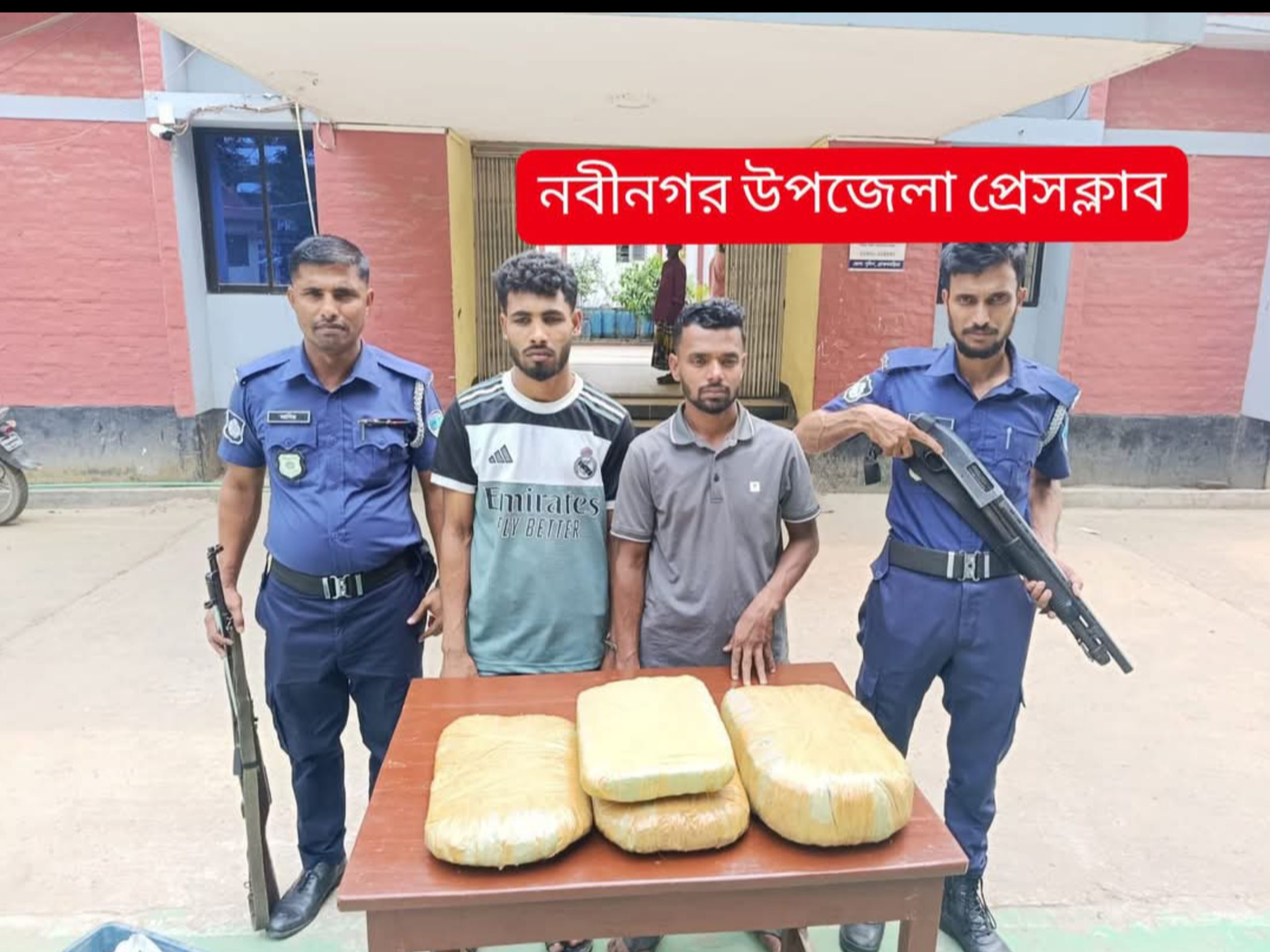 নবীনগর নৌকা ঘাটে আহমেদ হাসপাতালের ফেরিঘাট সংলগ্ন রাস্তা থেকে আজ রবিবার দুপুরে নবীনগর থানার পুলিশ অভিযান চালিয়ে ১০ কেজি গাঁজাসহ ২ যুবক কে গ্রেপ্তার করে পুলিশ।